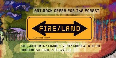 Fire/Land: Knowing the Territory is an original "art-rock opera" by Paul and Ameera Godwin that weaves music, poetry, and visual storytelling into an ecological journey. Drawing from Indigenous land practices, contemporary fire science, and lived experience of wildfire, the work explores the ways fire shapes identity, culture, and resilience. The opera invites audiences into a deeper relationship with land — honoring both its fragility and its power to renew. The work premiered at Wakamatsu Farm in 2023 with actors and Main Street Collective performing.